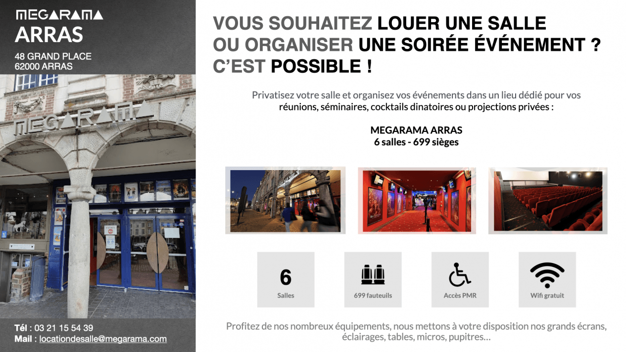 Pour toute demande de location de salle, nous vous invitons à nous contacter par e-mail à l'adresse locationdesalle@megarama.com en nous indiquant les informations suivantes :